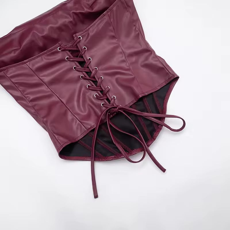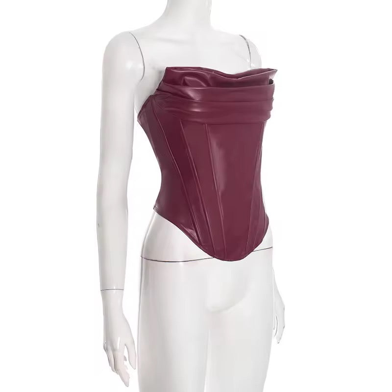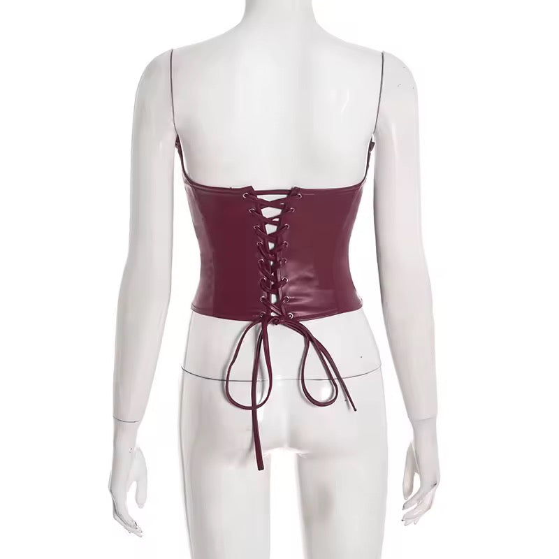 Blusa estilo corset, tela de cuerina en estrapple, anudada en espalda.